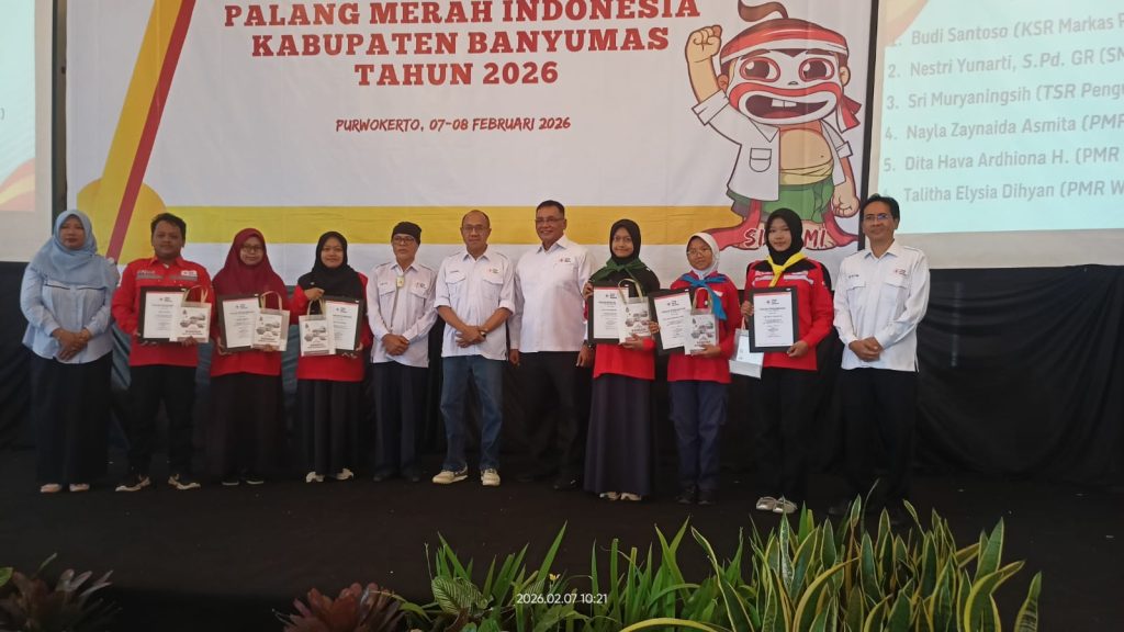 PURWOKERTO – Palang Merah Indonesia (PMI) Kabupaten Banyumas resmi melaunching buku berjudul “Aku Bangga Jadi Relawan” yang dilaksanakan di sela-sela Pembukaan kegiatan Musyawarah Kabupaten PMI Kabupaten Banyumas, bertempat di Hall Peony Hotel Dominic Purwokerto, pada Sabtu, 07 Februari 2026.